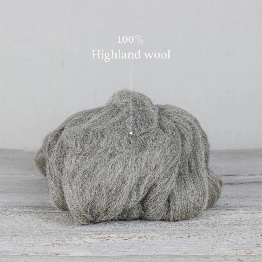 Fabulously fat and made for fun our Super Bulky single-ply yarn which works up with satisfying speed. Made with 100% Highland wool which is 100% natural, and is completely renewable and biodegradable, so it’s good for the planet and great for your craft.
