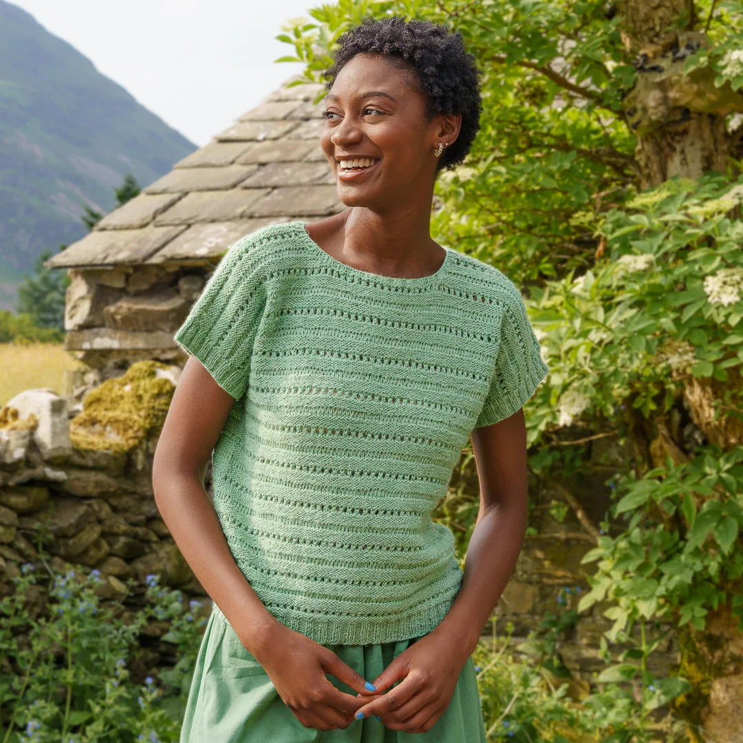 Knitted in The Fibre Co.’s &Make DK, this tee is the stuff of daydreams—think comforting drape that's as soft as summer clouds. With its light, airy personality, &Make DK ensures that your Dreamy Drift Tee isn’t just worn; it’s cherished. Are you ready to embark on a knitting journey sprinkled with joy, simplicity and a heart full of summer adventures?