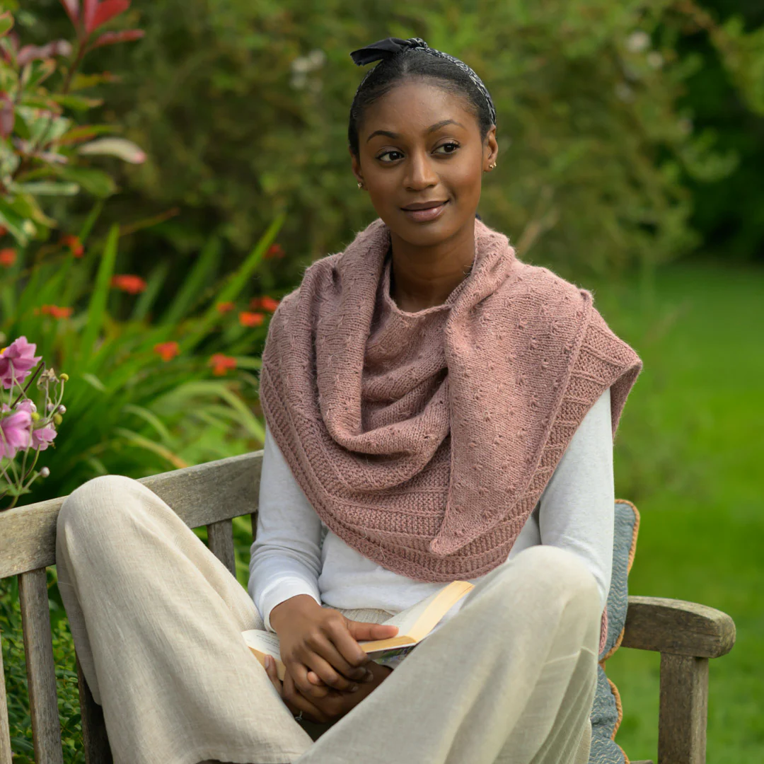 Vesperia Shawl is a stunning shawl featuring two intersecting patterns and a neat selvedge edge. Vesperia is French for the evening prayer song and is the inspiration for a shawl that will keep you warm on evening walks. Knit in Acadia or &Make DK, Vesperia is beautifully drapey and has a satisfying weight that is perfect for any occasion.